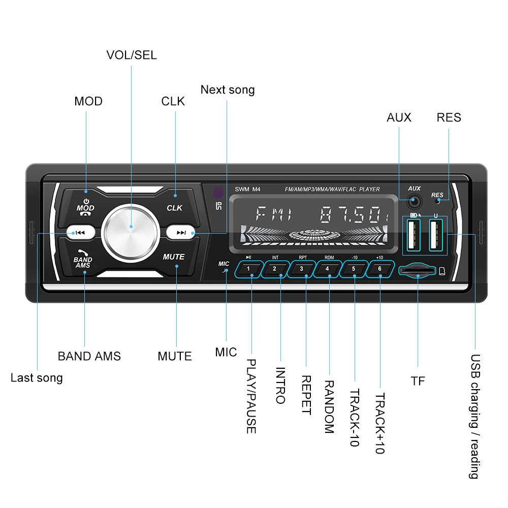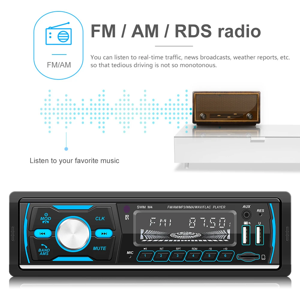 1. Поддержка Европейского вещания высокой четкости DAB полностью совместима с DAB + истинным цифровым сигналом2. Функция FM AM RDS: fm-радио с высококачественной стереосистемой, которая может осуществлять поиск каналов полностью автоматическим способом, полуавтоматическим способом и регулируемым способом acurate3. Семь цветов подсветки: поддержка семи цветов подсветки4.Bluetooth может работать с большинством устройств, подключайте телефон, чтобы держать руки свободными, когда приближается вызов, кроме того, вы даже экономите сумму денег, чтобы купить бизнес-наушники3. Пульт дистанционного управления: Поддержка дистанционного управления, вы можете управлять устройством с помощью пульта дистанционного управления, запуск/остановка/следующая/последняя музыка или фильм, радио, включение/выключение устройства4. Функция отключения памяти, звуковое состояние музыки или музыки во время отключения памяти5. Функция USB зарядки: Поддержка USB зарядки, не беспокойтесь о том, что ваш телефон не работает6. Воспроизведение u-диска/AUX: поддержка u-диска для воспроизведения, вам нужно только вставить u-диск в интерфейс машины для воспроизведения музыки, Поддержка внешнего входа AUX (plug)ОсобенностиНапряжение: 12 В постоянного токаМаксимальная выходная мощность: 4*50 ВтФормат аудио: MP3/WMA/WAV/FLACРасширение карты памяти: Макс 32GUsb-порт: двойной USBМобильный телефон зарядка: ПоддержкаСлот для карты: TF картаРадиочастотный диапазон: FM AM RDS DAB +Чип усилителя мощности: TDA7388Bluetooth: 4,0Интерфейс USB: 2,0Товар входит в комплект1 х Автомобильный MP3-плеер1 х Кабель питания1 х Акустический кабель1 пульт дистанционного управления2 x ключ для демонтажа1 x DAB HD Антенна1 x Руководство пользователя