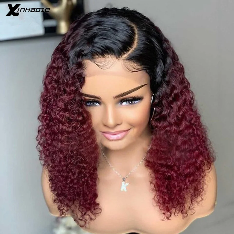 Парики Омбре из коричневого бордового бразильского шелка 5x5, искусственные человеческие волосы, 180% плотность, кудрявые, вьющиеся, на шелковой основе, парики на сетке