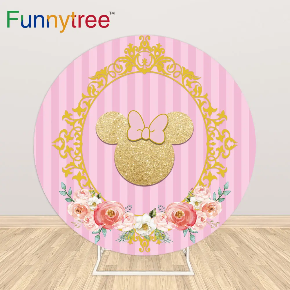 Funnytree круглые фоны, круглые фоны, крышки, мышь, бант, розовый, украшение на день рождения, детский душ, индивидуальная фотосессия, фотозона