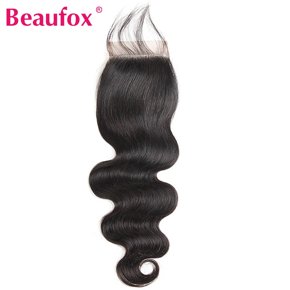 Beaufox 4x4 кружевное закрытие бразильское объемное волнистое закрытие Remy человеческие волосы кружевное закрытие швейцарское кружево средней длины коричневый цвет можно отбелить