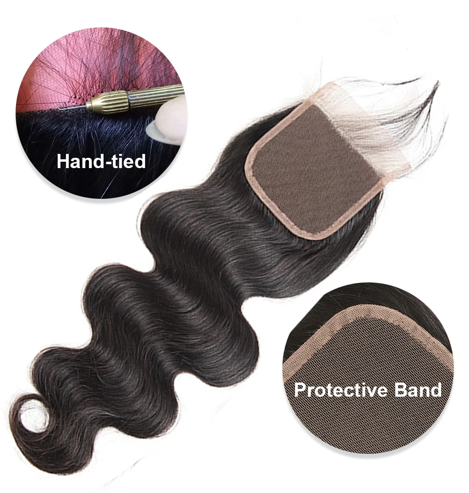 Beaufox 4x4 кружевная застежка бразильская волнистая застежка Remy человеческие волосы кружевная застежка швейцарская кружева среднего коричневого цвета Можно отбеливать