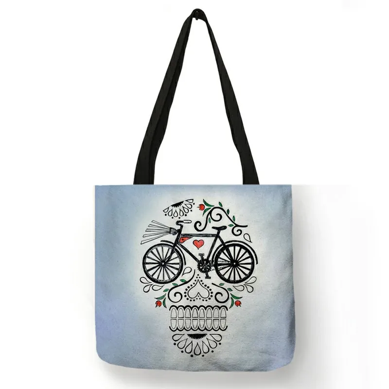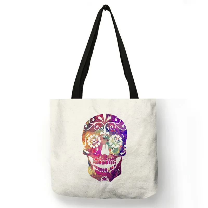 B13125 женские сумки с акварельным рисунком черепа, льняная тканева...