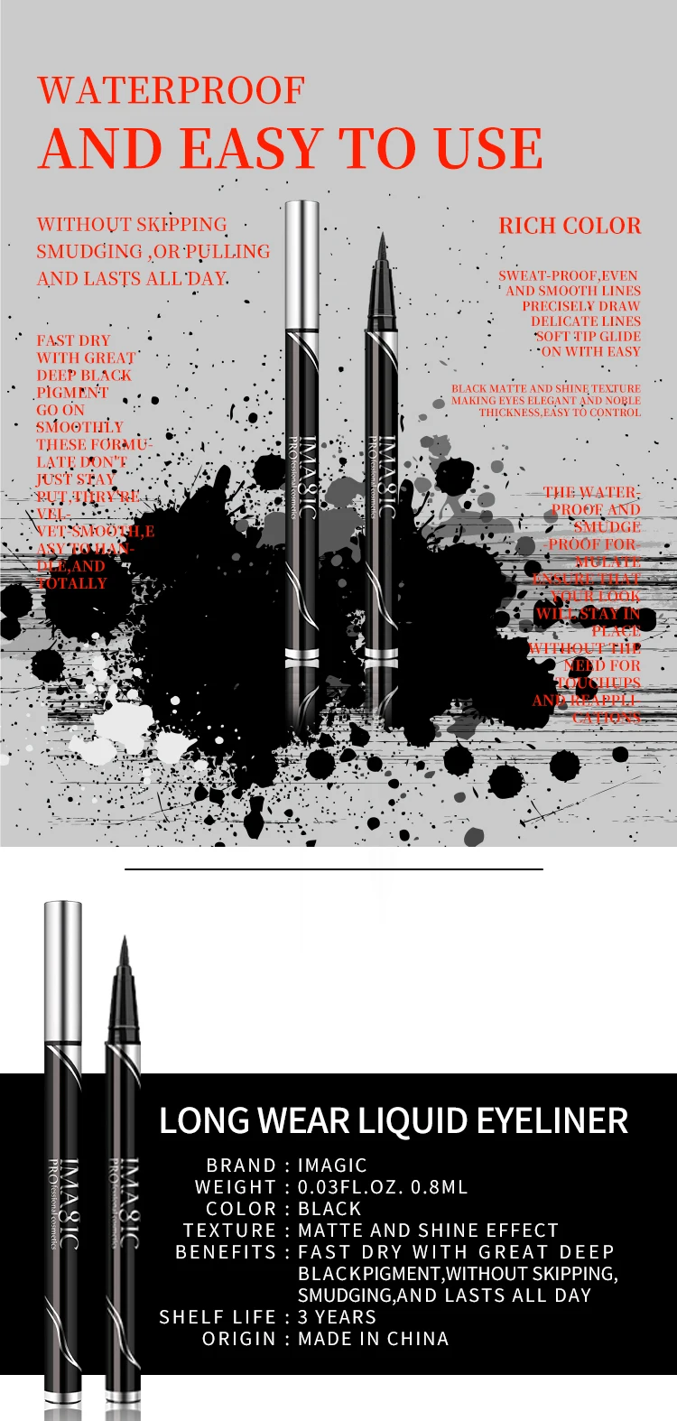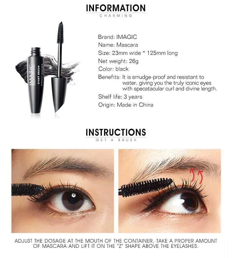 IMAGIC комбинация для глаз Тушь для ресниц Толстая Водостойкая продолжительная завивка водостойкая и не смазанная долговечная Черная Подводка для глаз