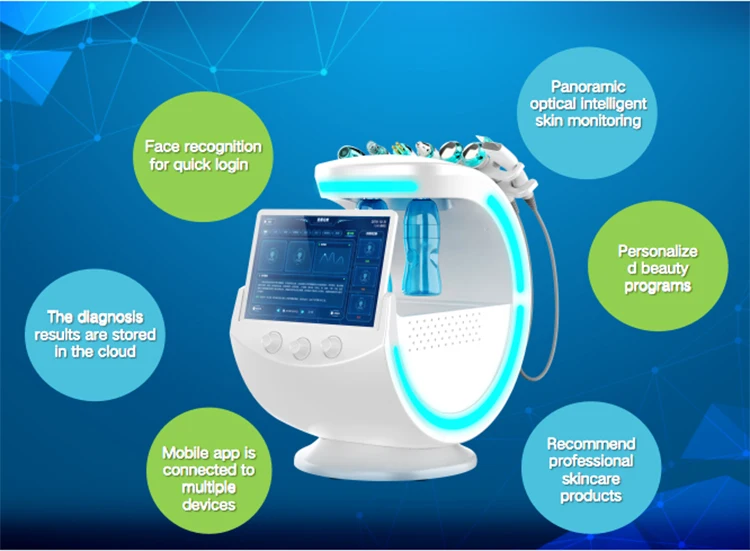 1) Ультразвуковая головка: стимулирует микроциркуляцию, омолаживает кожу2) многополярный RF: компактная форма, подтяжка лица3) био-микроток: дайте растянуть линию челюсти, био Поднимите общее затягивание кожи лица4) гидродермабразия: Очищение лица, пилинг, очищение пор5) холодный молоток: холодная кожа после интенсивной обработки6) пистолет тумана: нано-уровень распыления, легко впитывает эссенцию кожи.7) анализ кожи: 10-мегапиксельная камера для обнаружения возраста кожи.