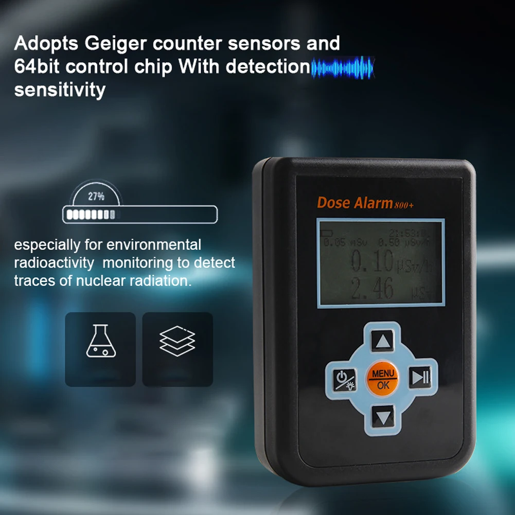 Особенности:Многофункциональный дизайн, этот инструмент в основном используется для радиационного мониторинга X, γ и твердых β-лучей.Принимает датчики счетчика Geiger и чип управления 64 бит, с чувствительностью обнаружения, особенно для мониторинга радиоактивности окружающей среды для обнаружения следов ядерного излучения.Настроенный цветной ЖК-экран, разрешение 128*64, четкое определение дисплея, вы можете четко видеть данные в реальном времени.Измерение в реальном времени и отображение эквивалентной дозировки и накопительной дозировки в рабочей области.Прибор может установить значение сигнала тревоги скорости дозировки и накопительной дозировки.Три селективных режима сигнализации: звуковой сигнал, светильник, будильник и вибрация.Есть 3 единицы измерения переключаемые: скорость дозировки в блоке μSv/h, μGy/h и m R/h, легко настроить в соответствии с вашей привычкой использования.Низкое энергопотребление и функция индикации низкого напряжения батареи, постоянное хранение данных после отсечка мощности.Характеристики:Название: детектор ядерной радиацииЦвет: черныйМатериал: АБС-пластикБатарея: 2 аккумулятора * AAA батарея(Не входит в комплект)Разрешение: 128*64Обнаружение лучей: X, γ, твердые β-лучиДиапазон энергии: 50keV-1.5MeV ≤ ± 30% (для 137Cs-)Нормальное количество: в 0,5 ч/чОтносительная погрешность: ≤ 8% (137CS 1mSv/h)Детектор: трубка G-M компенсации энергии (счетчик Гейгера)Чувствительность: 80CPM/μSv/h (для Co-60)Единица измерения: μSv/h, μGy/h, mR/hДиапазон измерений:Эквивалентная доза (DER): 0.08-1000sv SV/h (макс. 10mSv/h)Совокупная доза эквивалентная ставка: 0.00μSv-500.0mSvНастройка сигнализации:Доза эквивалент (DER): выберите одно из 0,5, 1,0, 2,0, 2,5, 5,0, 10,0, 50,0, 100,0 ч/чСовокупная доза эквивалентная ставка: Выберите из 0,05, 0,5, 1,0, 2,0, 5,0, 10,0, 20,0, 50,0, 100,0 sSvРабочая среда: от-10 ℃ до 45 ℃, ≤ 95% RH (45 ℃)Размер изделия: 102*69*26 мм/4,02*2,72 * 1.02inПосылка Размер: 130*100*40 мм/5,12*3,94 * 1.57inПосылка Вес: 180 г/6,35 унцииУпаковочный лист:1 * Детектор ядерной радиации