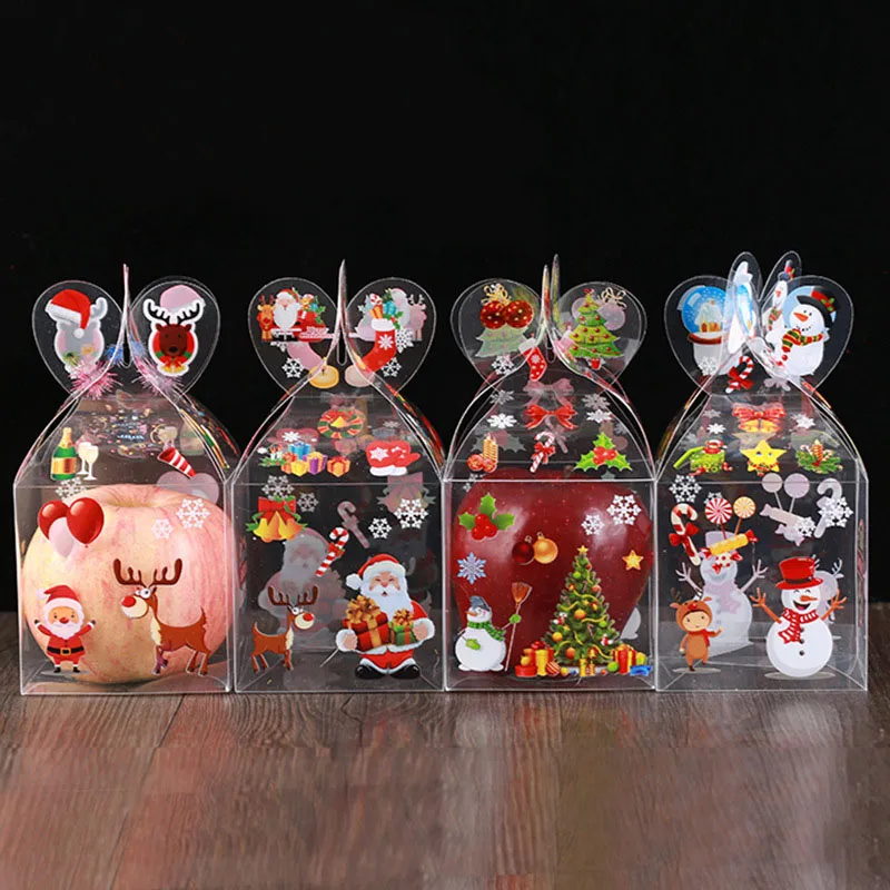 4 шт прозрачная Рождественская Подарочная коробка ПВХ Упаковка Конфеты Яблоко креативный Мультфильм Снеговик Санта Клаус Олень декоративные коробки