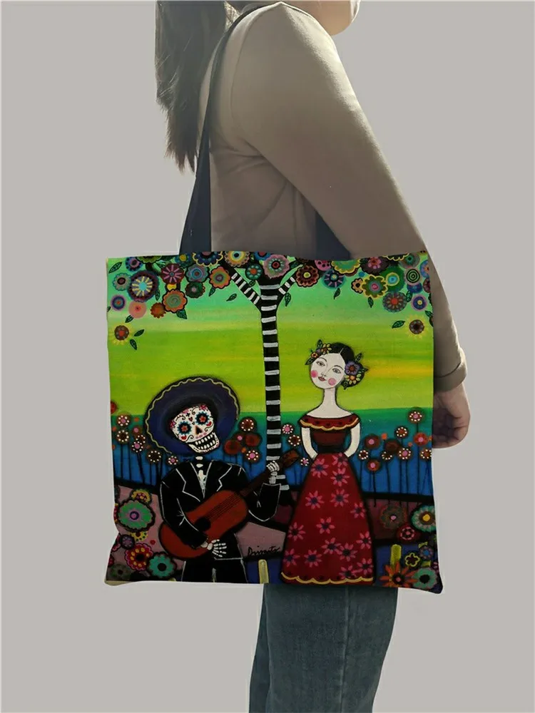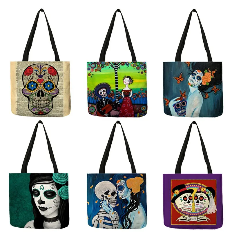 Женская сумка через плечо с принтом «День мертвых сахаров», многоразовая сумка для покупок с короткими ручками, большая емкость B13126