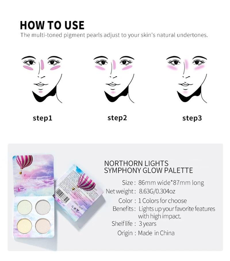 HANDAIYAN 4 цвета высокий диск тени для век Палитра хайлайтер порошок поляризационная ПАЛИТРА Макияж Косметика для контурирования лица