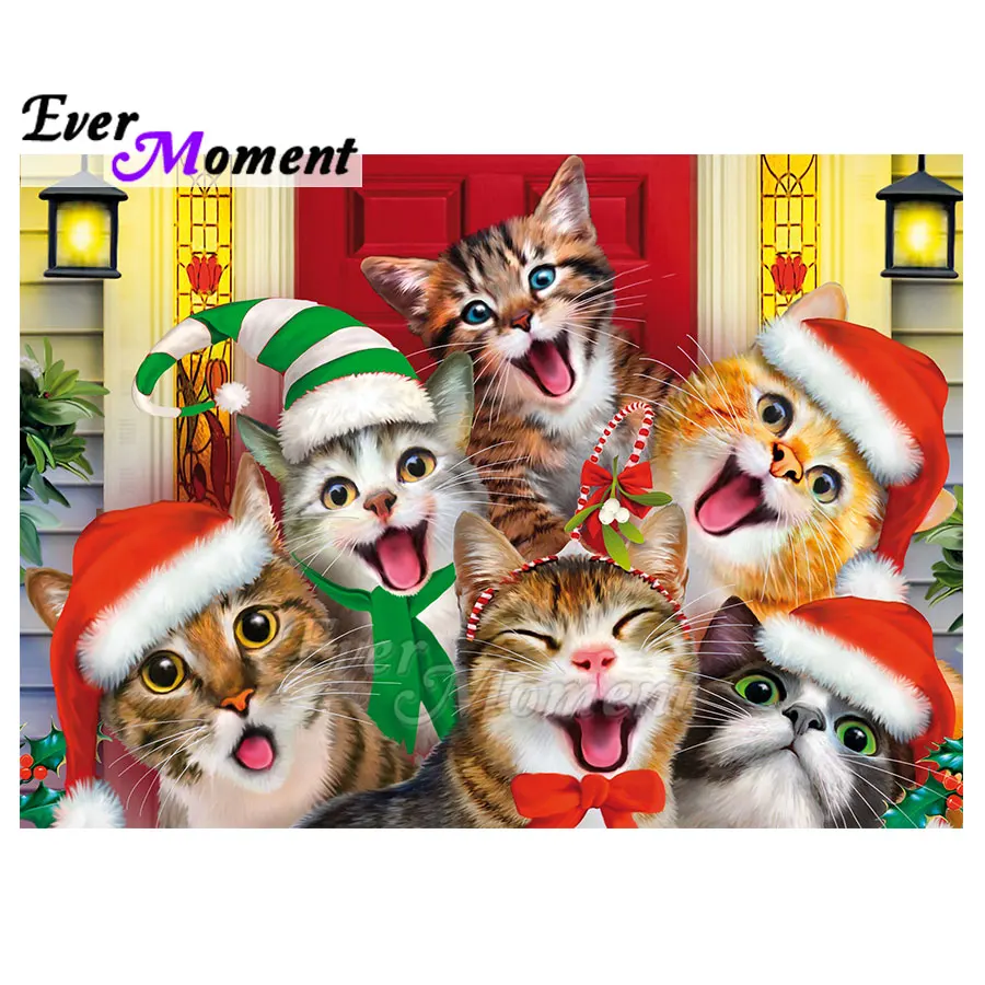 Ever Moment 5D алмазная картина, полностью квадратные Стразы, таинственный Рождественский подарок, милые кошки, мозаика, картина, искусство, домашний декор 5L630