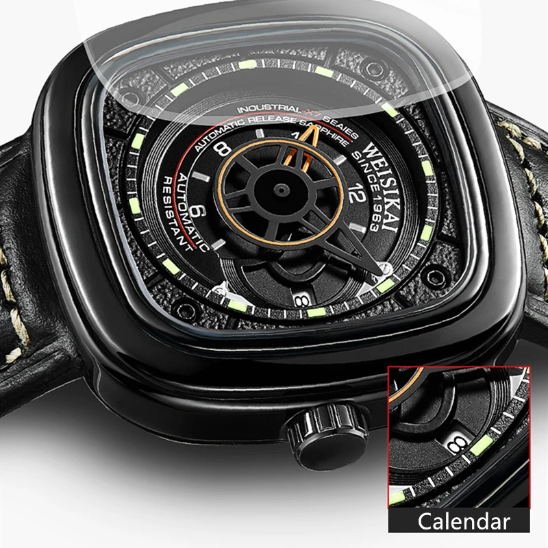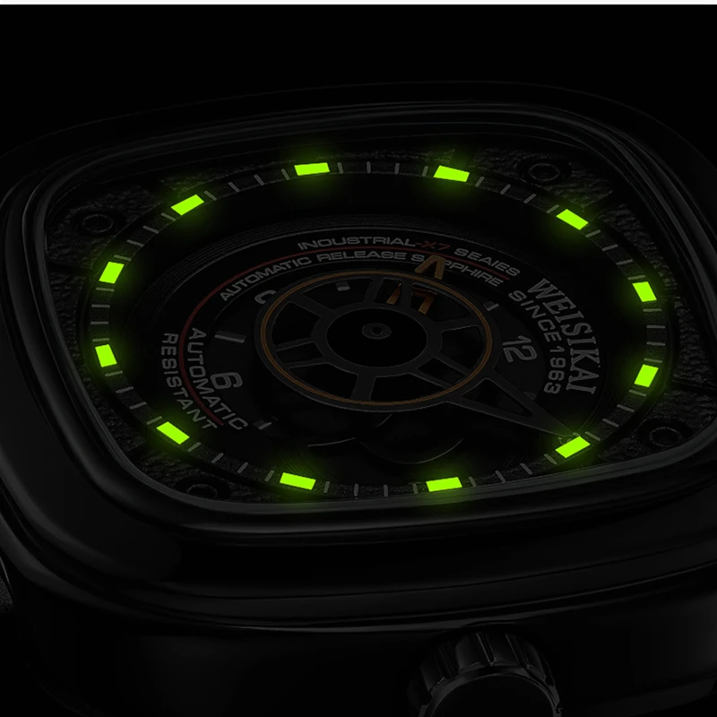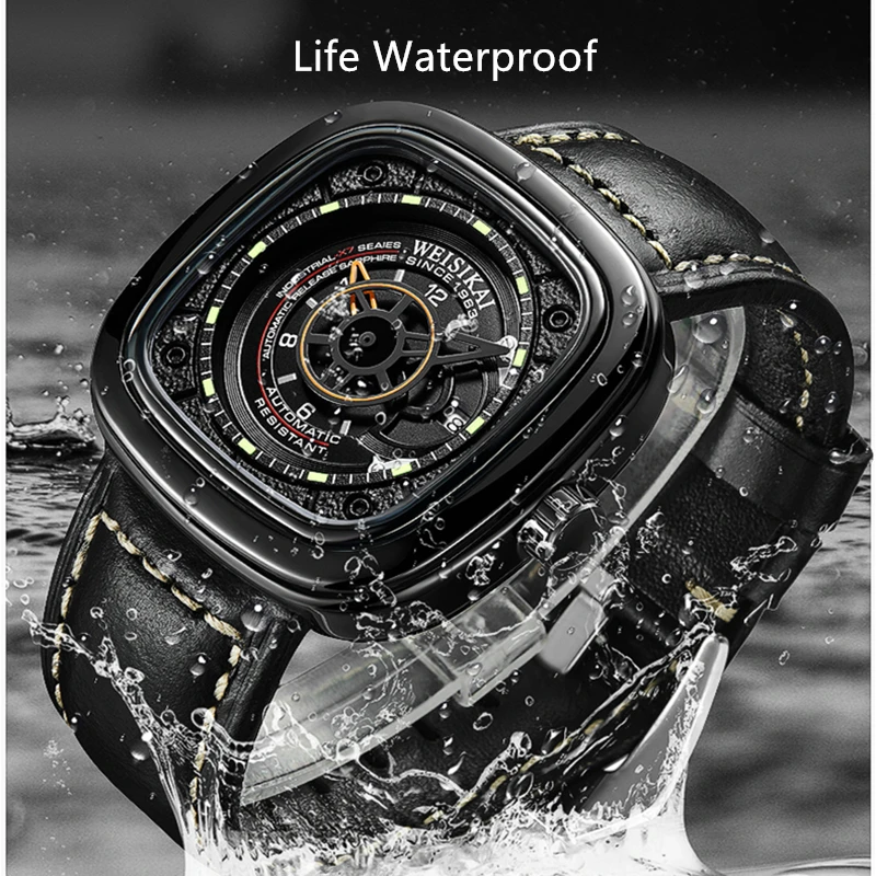 Часы WEISIKAI Мужские автоматические механические, спортивные светящиеся водонепроницаемые наручные, с квадратным циферблатом, 6010