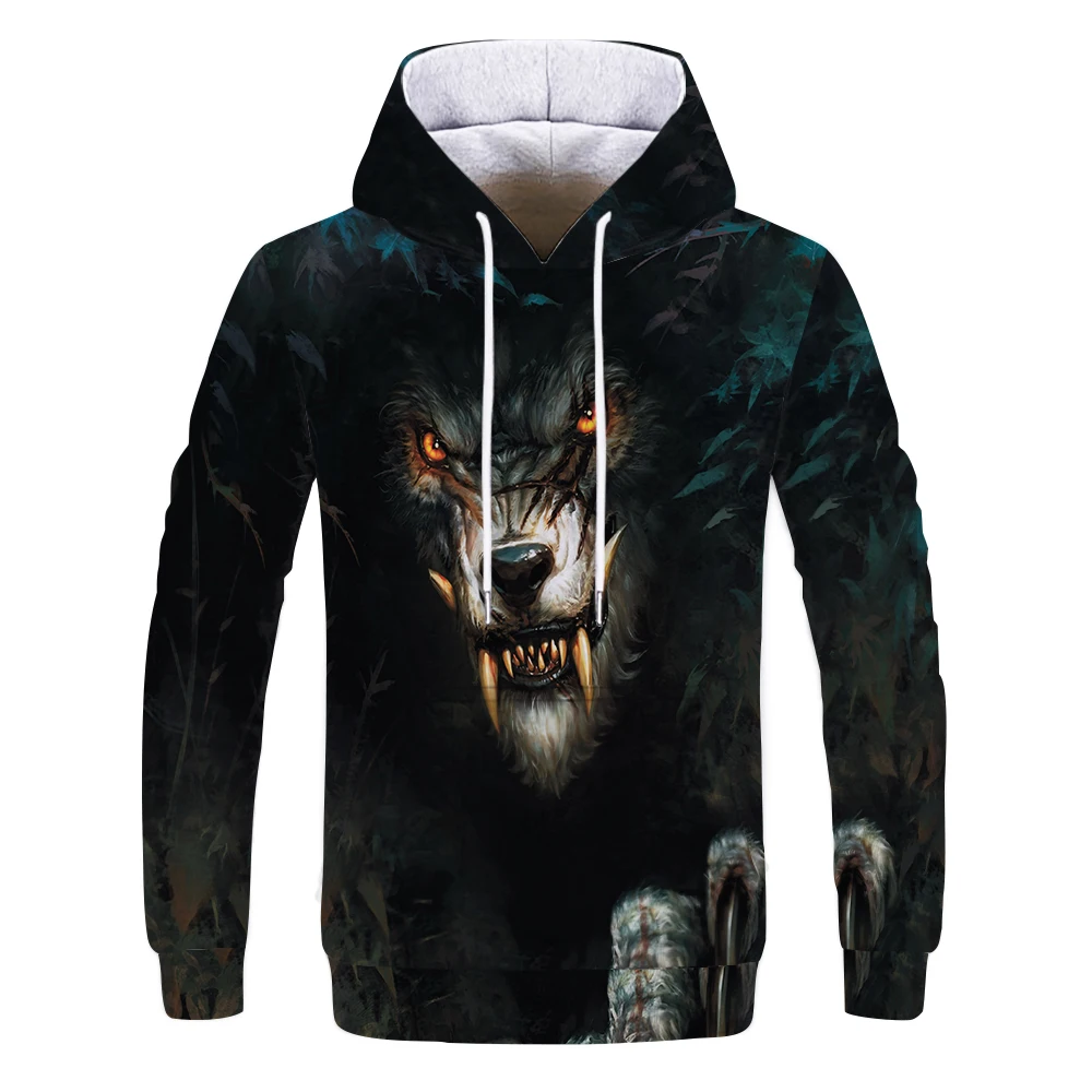 2021 модная толстовка с капюшоном с изображением волка тигра, Мужск...