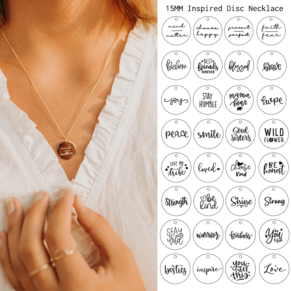 Изящное вдохновляющее ожерелье с цитатами и диском, ювелирное изделие в подарок для дочек, мам, подружек невесты, 15 мм