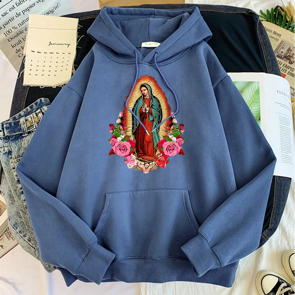 Толстовка с капюшоном Девы Марии Гваделупской, женский свитер с капюшоном, теплая осенняя одежда для пар, корейские модные женские толстовки