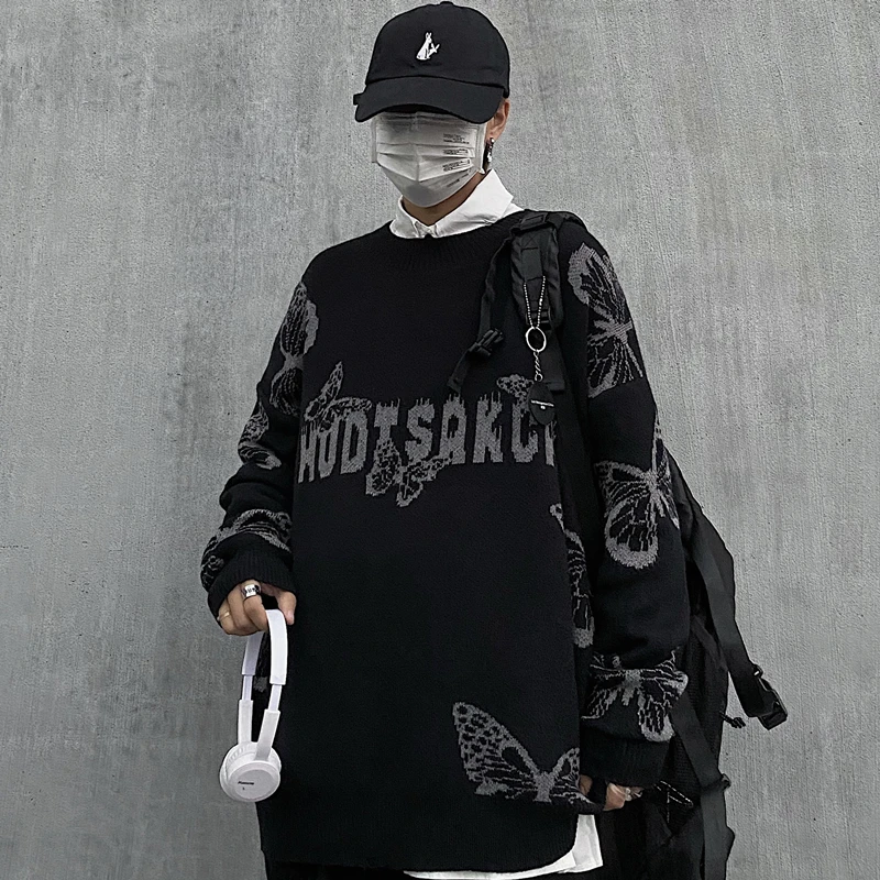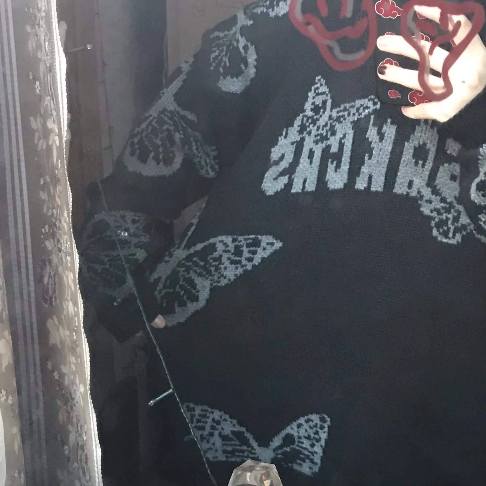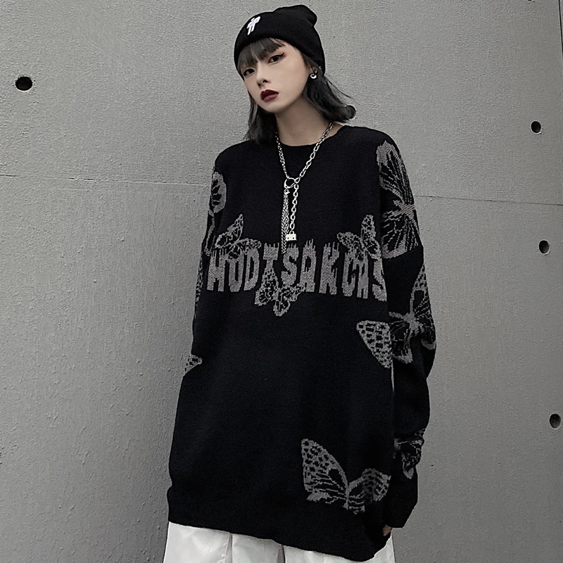 Свитер женский, жаккардовый, оверсайз, с бабочками, в готическом стиле, с круглым вырезом, 2021, новинка свободная уличная одежда
