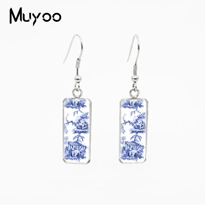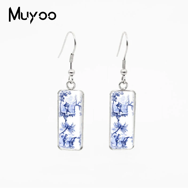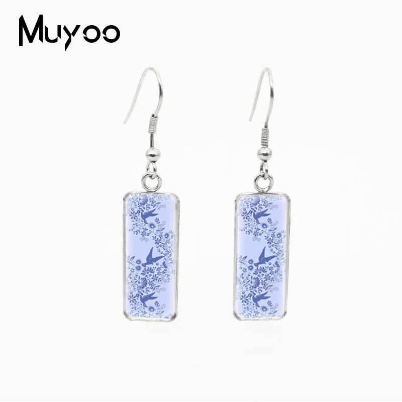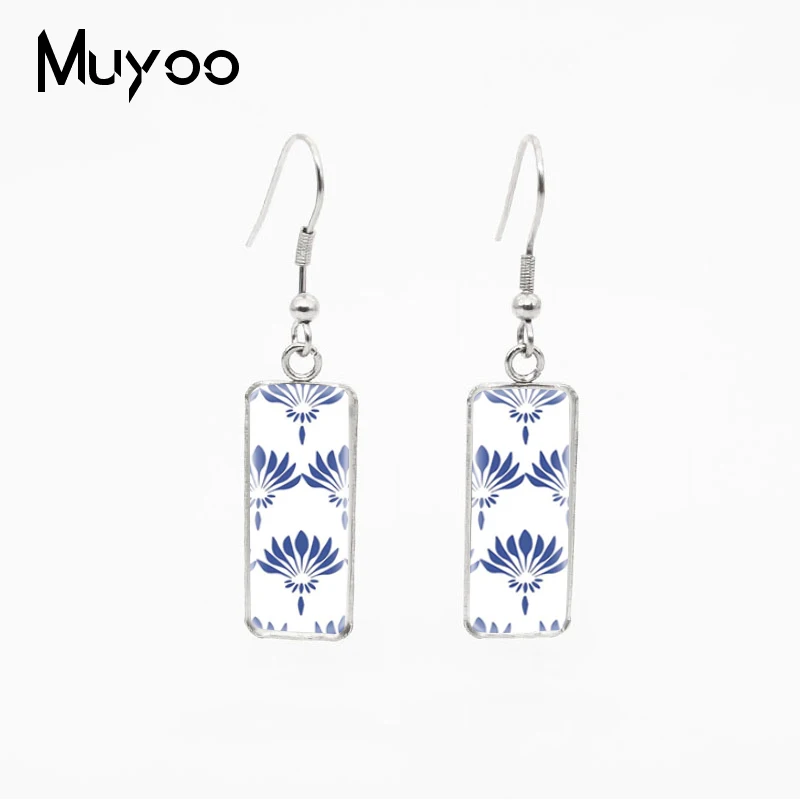 Новинка, Классические китайские стильные сине-белые фарфоровые узоры, печать, ювелирные изделия ручной работы, прямоугольные серьги С рыболовным крючком