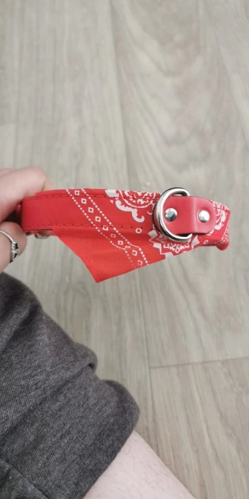 Спасибо. Отличный ошейник. Точный размер, как для маленькой собачки, так и для кошки. И качество хорошее. Изящный и красивый. Никаких посторонних запахов или дефектов нет. Стоит своих денег. Доставка быстрая. В общем очень очень очень понравился этот ошейник косынка.