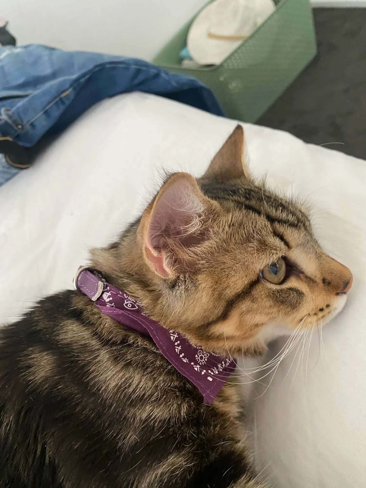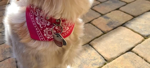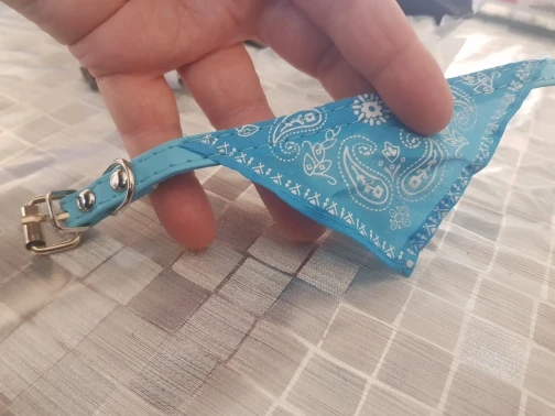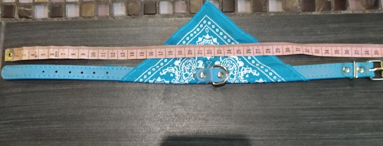 A coleira é muito boa, mas o lenço é um bocado pequeno.