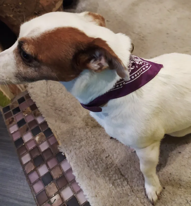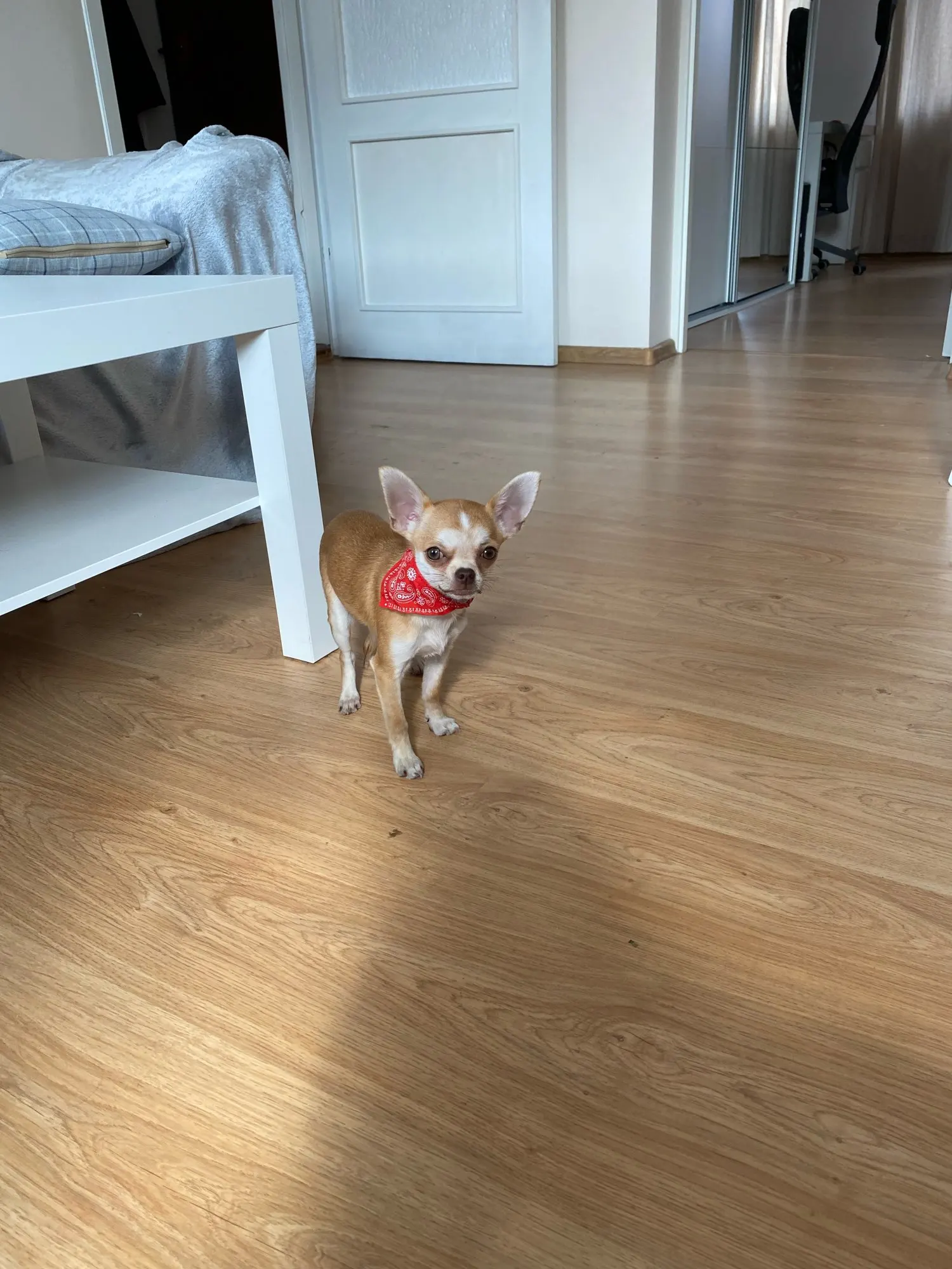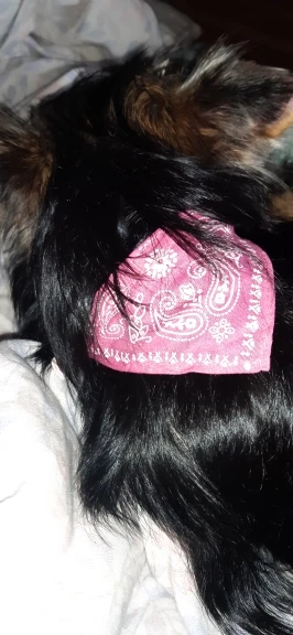 очень очень сильно воняет , вся собака провоняла , платочек короче раза в 3 чем на картинке почти не видно , не советую товар положил в шкаф ненужных вещей