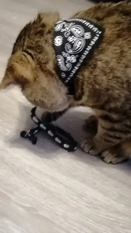 Ошейник пришёл быстро. Выглядит хорошо. Цвет яркий, узор четкий. На кота ещё не одевала.