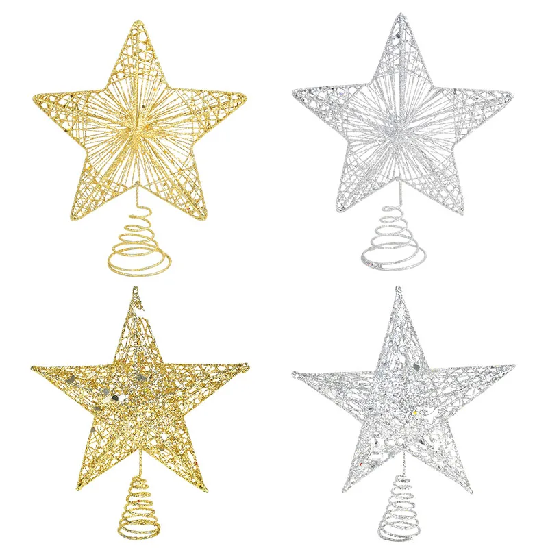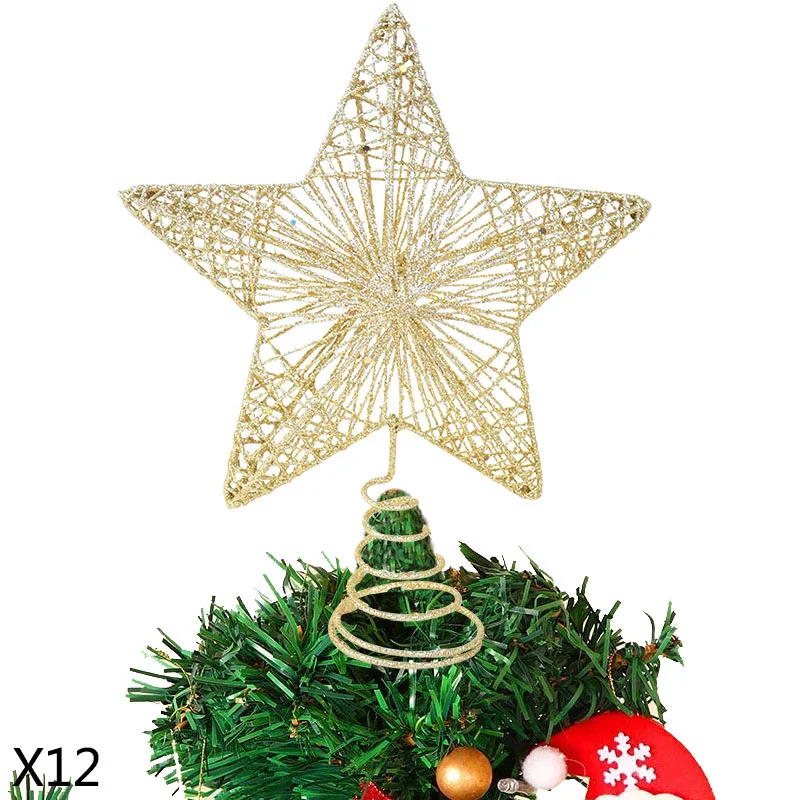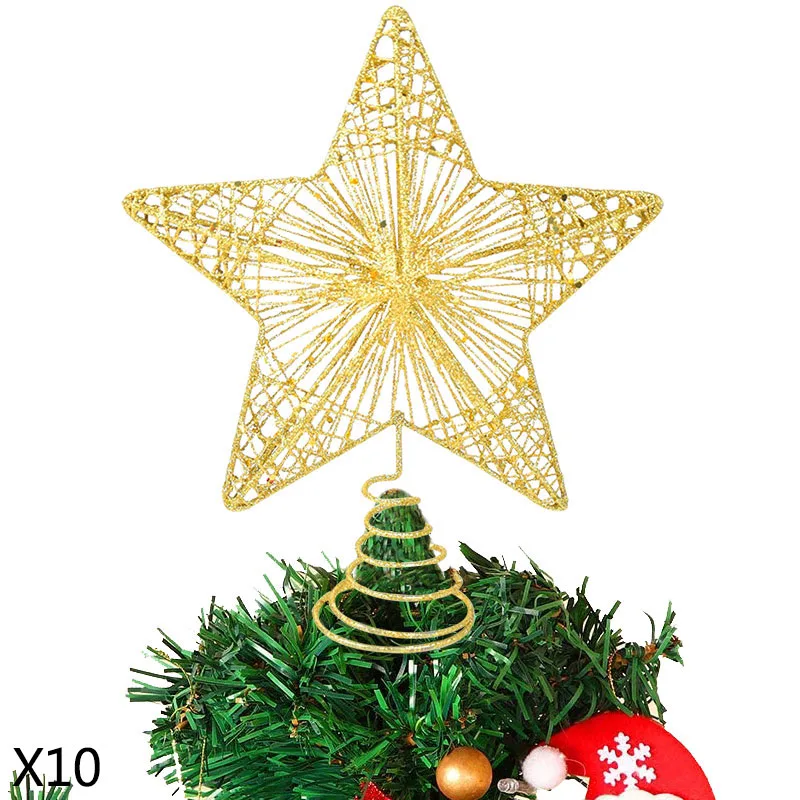 1 шт. блестящая Металлическая Декоративная звезда для рождественской елки, Топпер, звезда, украшения для рождевечерние, золотые, серебряные, красные звезды, Декор