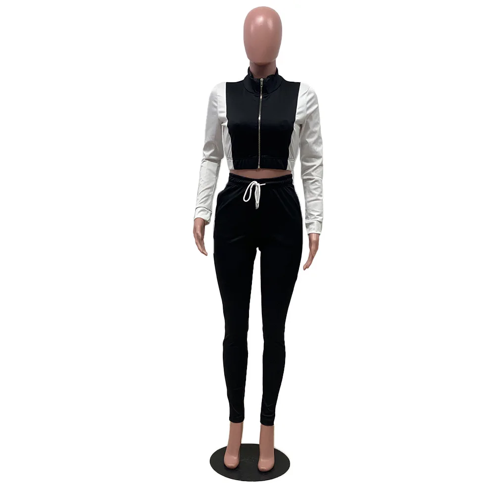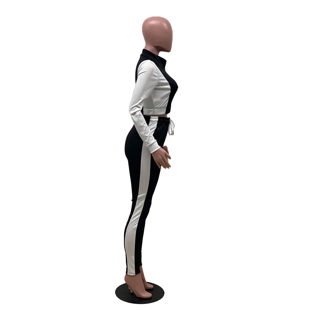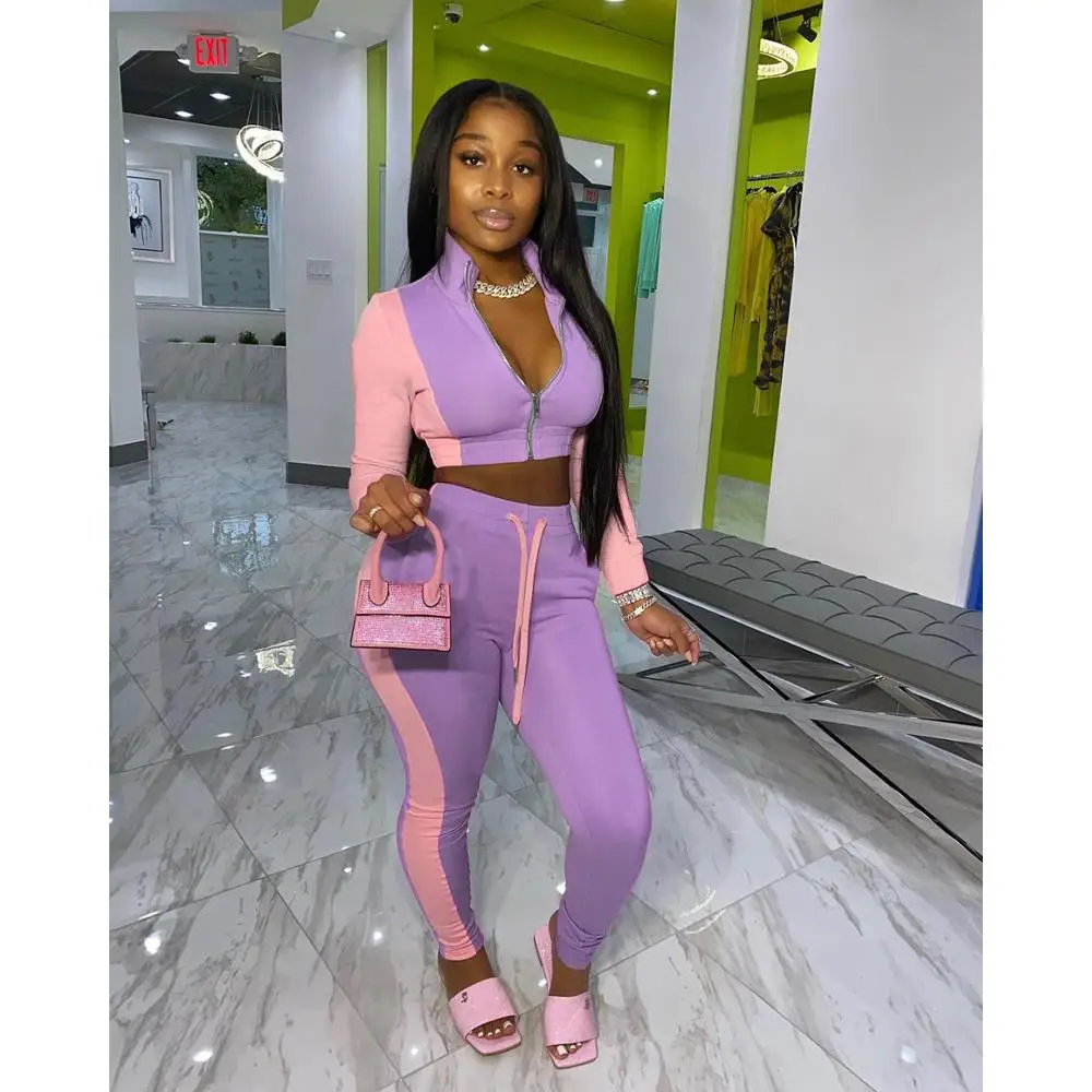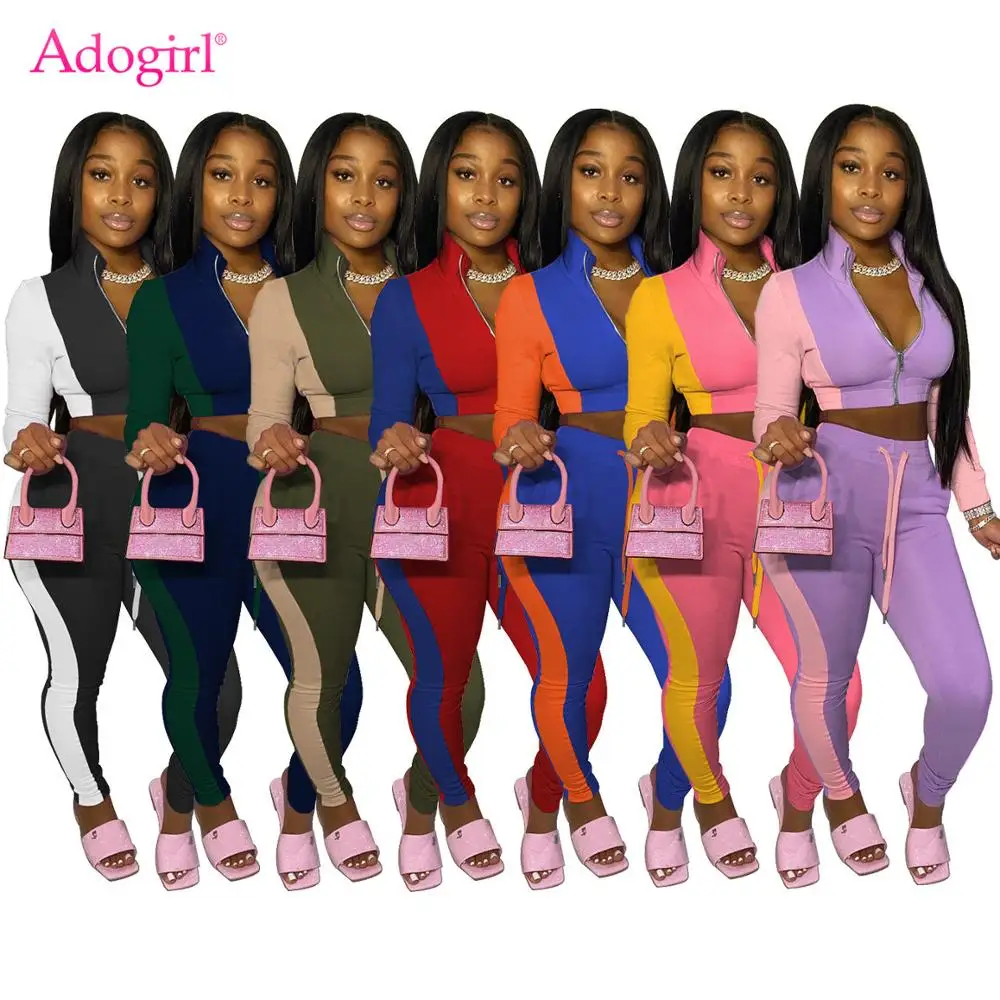 Женский спортивный костюм из двух предметов Adogirl, разноцветная куртка на молнии с длинным рукавом и завязками с высокой талией, спортивный костюм