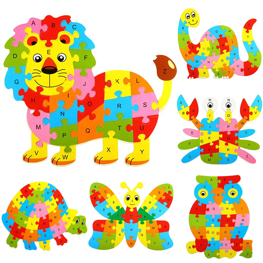Модный Деревянный алфавит с животными, головоломка, Детская развивающая игрушка