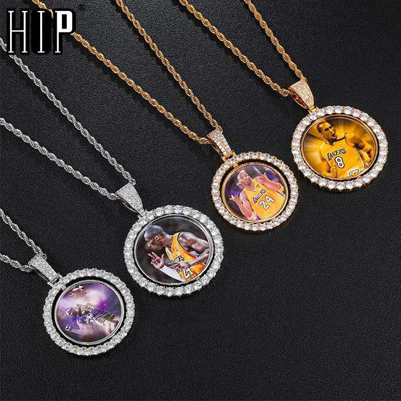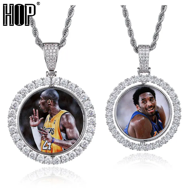 Ожерелье и кулон для мужчин, в стиле хип-хоп, круглое, вращающееся, двустороннее, с фианитами