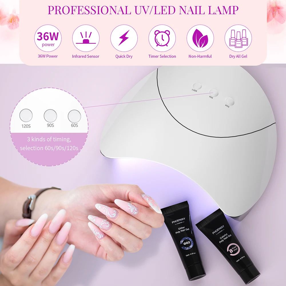УФ светодиодный лампа для наращивания ногтей, набор гелей для ногтей, 36 Вт, полуперманентный, набор для лаков отмачивания