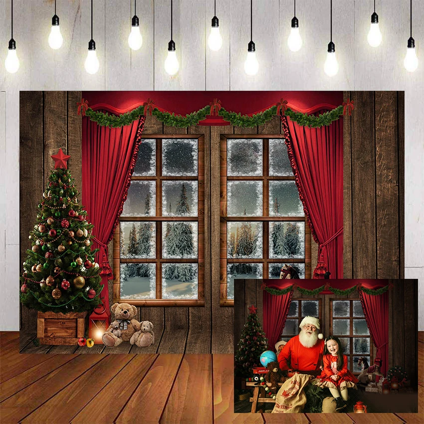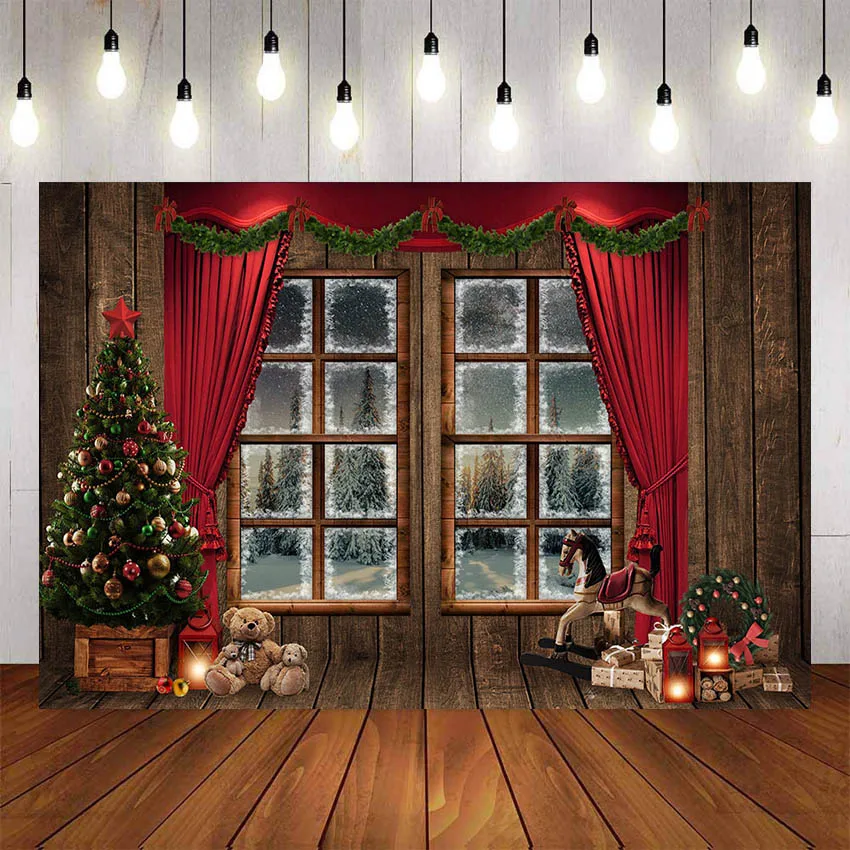 Фотофон Mehofond Рождественская елка снег окно игрушка подарок занавес фон для фотостудии