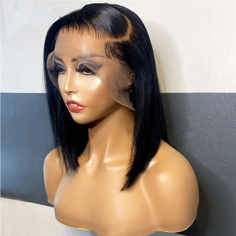 Парик для косплея женщин, шелковистые прямые короткие синтетические кружевные передние парики с детскими волосами, из термостойкого волокна, естественный цвет