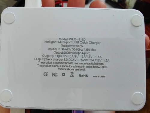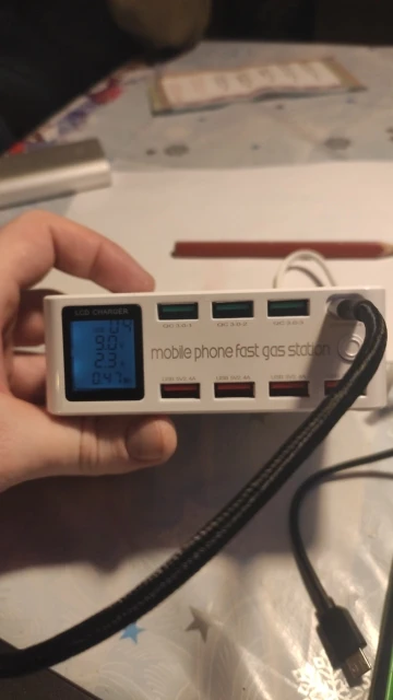 доставка 2 недели. Все как в описании. 3 qc 9в2а, 4 обычных 5в2а. гнезда usb не разработаны, если нормально вставлять то заряжает только 1 из 7 usb. осталтные заряжают если штекер наискосок вправо сдвинуть. после 10-15 тудасуда еще 2 гнезда стали работать нормально. Взял потому что задолбало 3-4 зарядки тыкать в удлинитель. Банку qumo 26000mah зарядил часов за 6-7))
