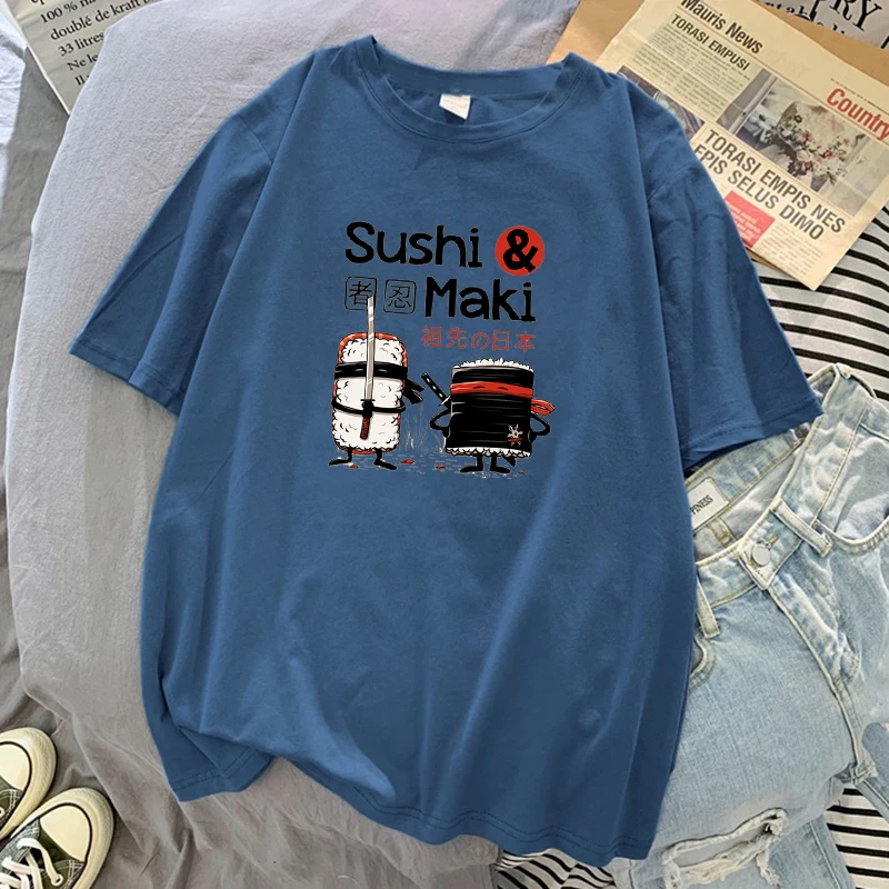 Женская футболка с забавным принтом, летняя футболка большого размера с круглым вырезом, японский ниндзя, суши, футболка с принтом Maki