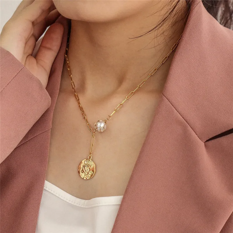 Шикарное жемчужное ожерелье для женщин, новинка 2020, подвеска из нержавеющей стали в стиле ретро в стиле барокко, цепочка в стиле панк, античное украшение, подарок, сексуальное модное колье