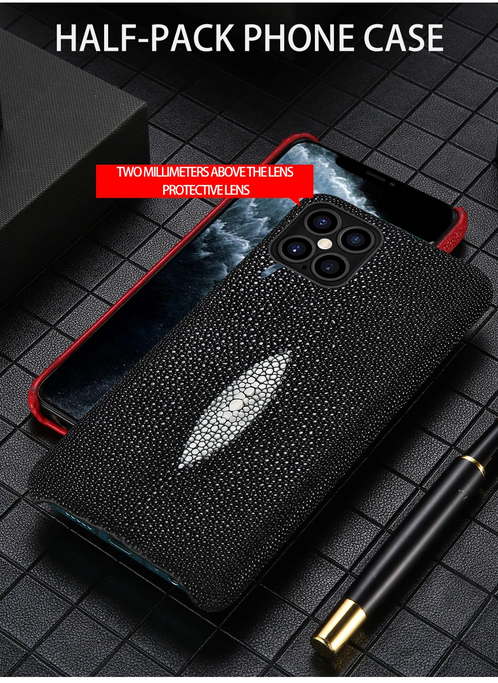 Чехол для Iphone 12 Pro Max, 12 Max, 11 Pro Max, Se 2020, X, Xr, Xs Max, 8, 7 Plus, 6, 6s, 5, 5s, из натуральной кожи ската