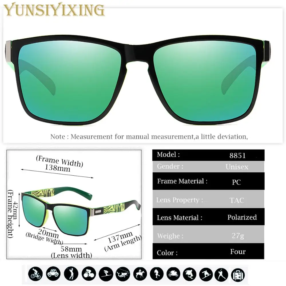 Мужские и женские винтажные очки YSYX, квадратные поляризационные солнцезащитные очки UV400, для рыбалки, аксессуары, 8851