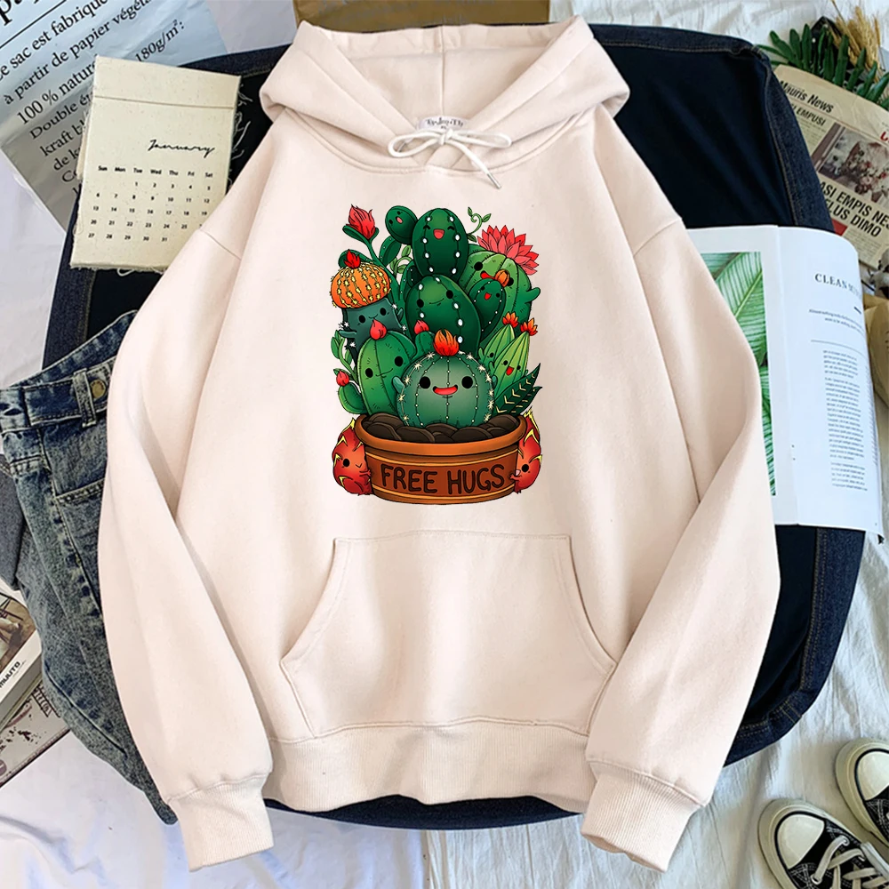 Толстовка женская с капюшоном, худи в стиле Харадзюку с милым мультяшным принтом кактуса, женская одежда в стиле панк, Осеннее худи для женщин