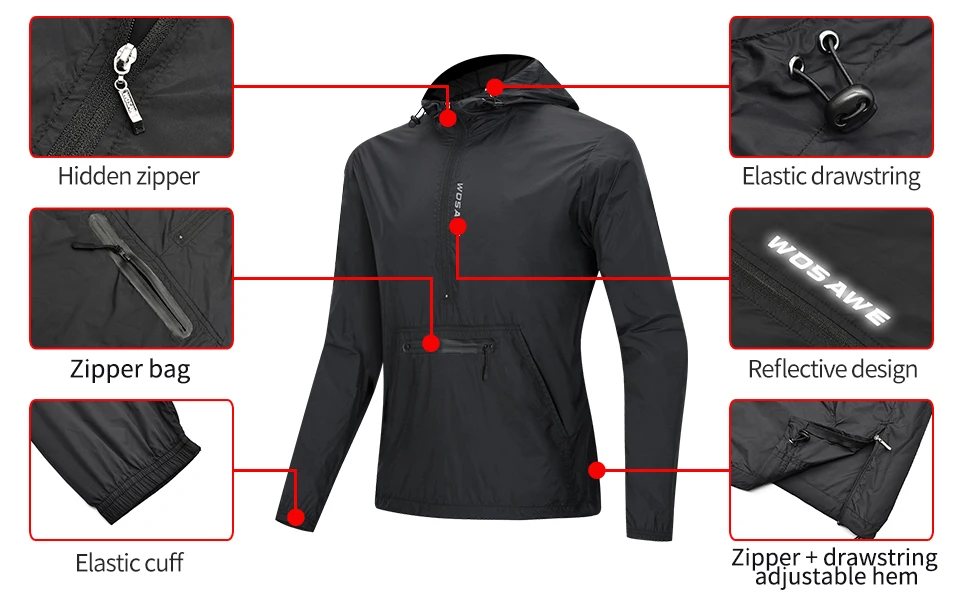 Мужская велосипедная куртка WOSAWE, ветровка с капюшоном, велосипедный ветрозащитный жилет, ветрозащитная короткая велосипедная непромокаемая куртка