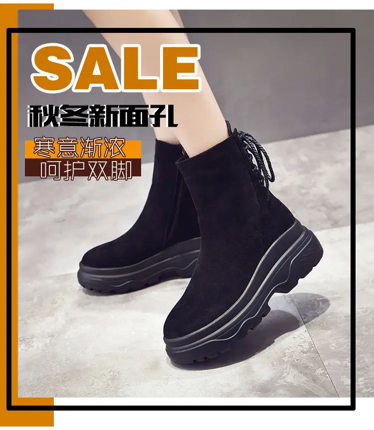 Зимние новые женские короткие сапоги в британском стиле, обувь на платформе, короткие сапоги на толстой подошве из хлопка, женские сапоги, хлопковая обувь для снега