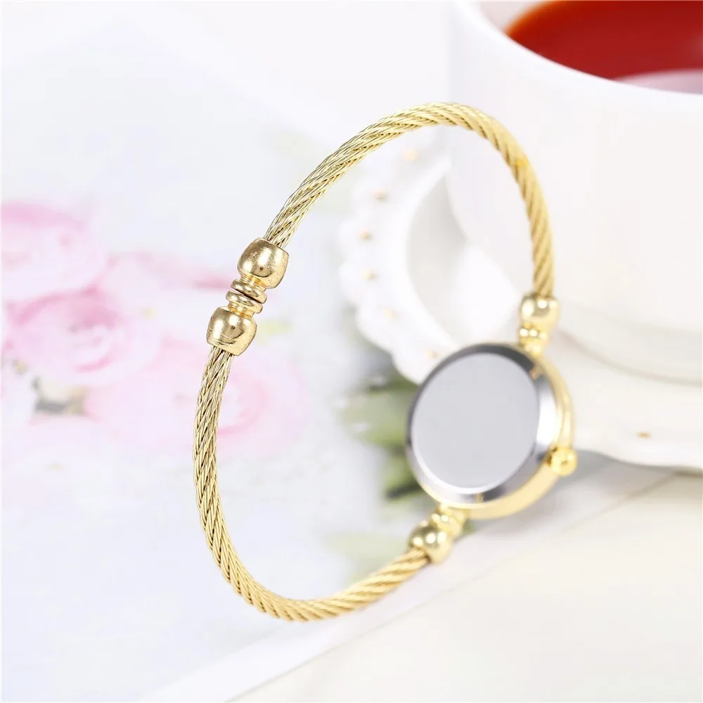 Популярные роскошные женские часы, стеклянный зеркальный браслет, часы, Круглый Аналоговый тонкий ремешок, золотые кварцевые наручные часы, женские часы