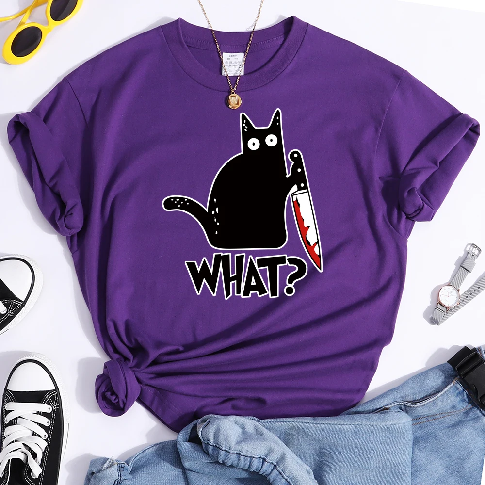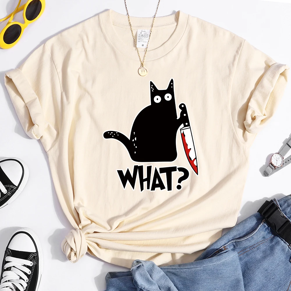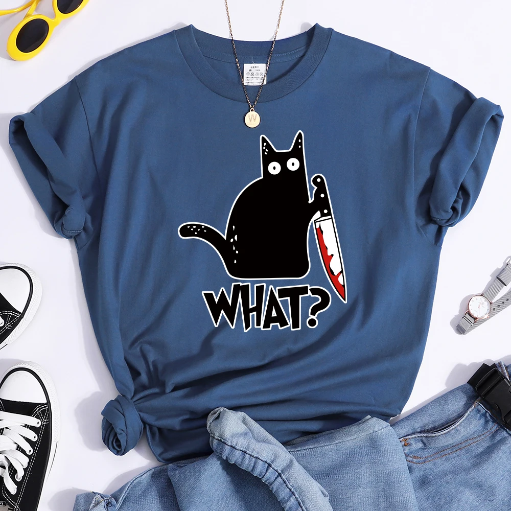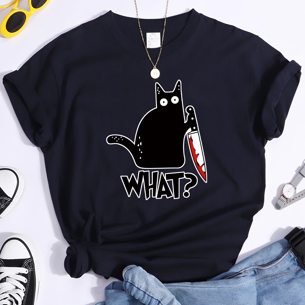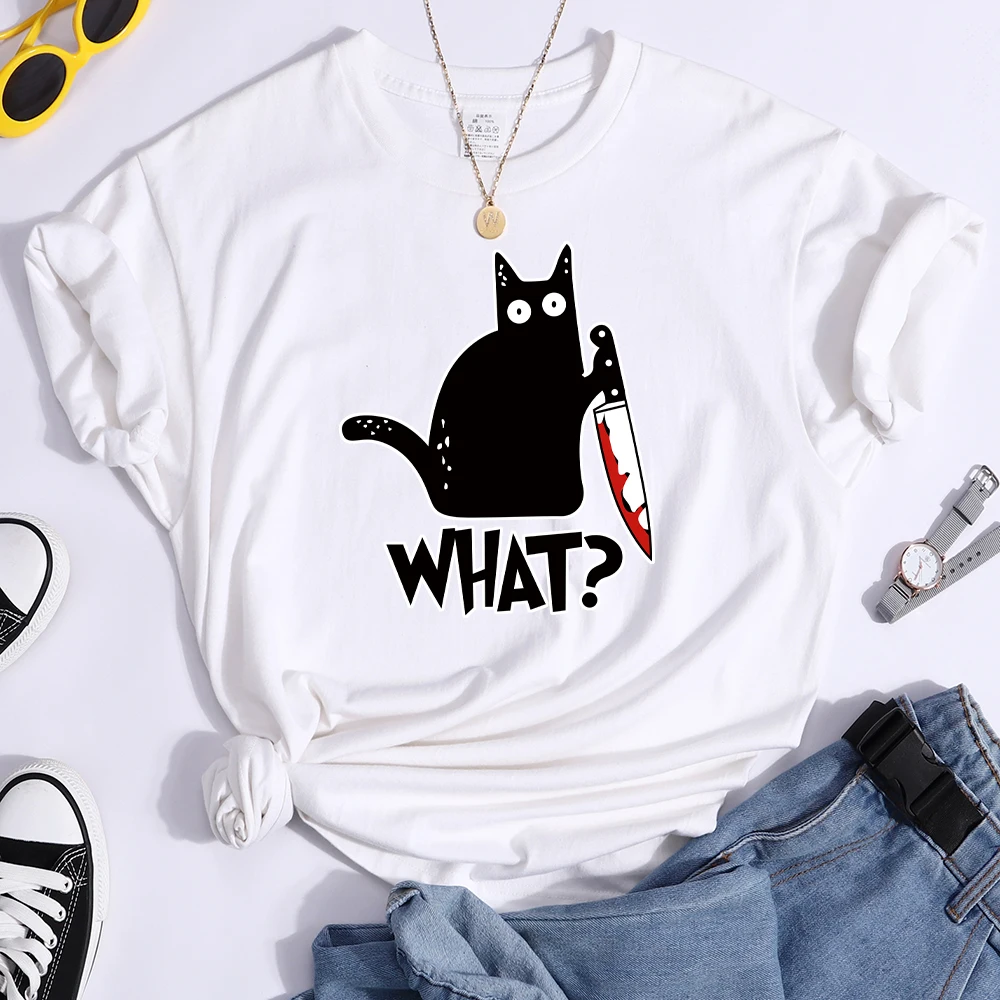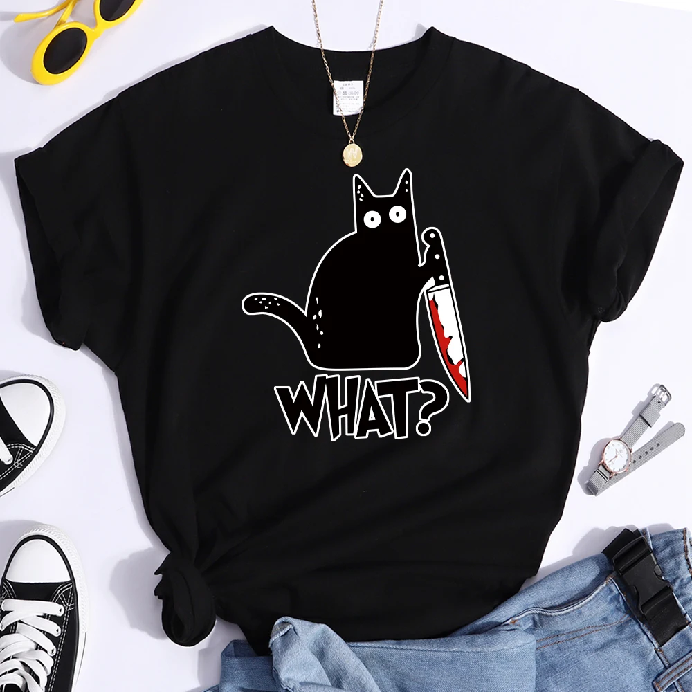 Женская футболка с принтом Kawaii Black Cat Killer, летняя уличная одежда с коротким рукавом, свободная футболка большого размера