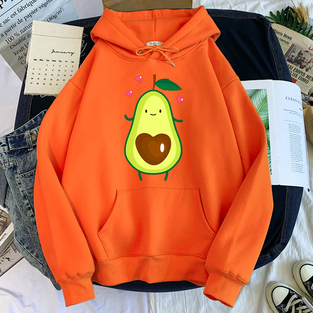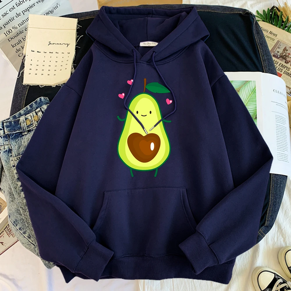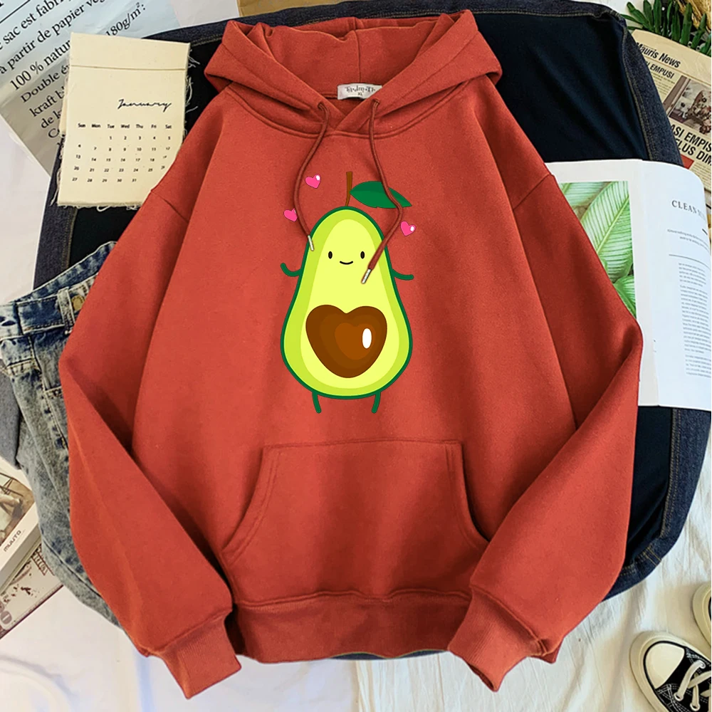 Толстовки с милым рисунком авокадо, толстовка с капюшоном для женщин, большие размеры, модный пуловер для женщин, эстетика, зимняя женская толстовка