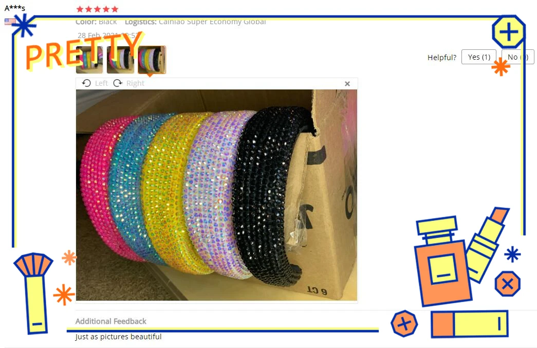 Я заказал около 10-12 повязок на голову. Одна Красная Блестящая повязка на голову с двумя бриллиантами отсутствует. Прибыл примерно через 2 недели в Грузию