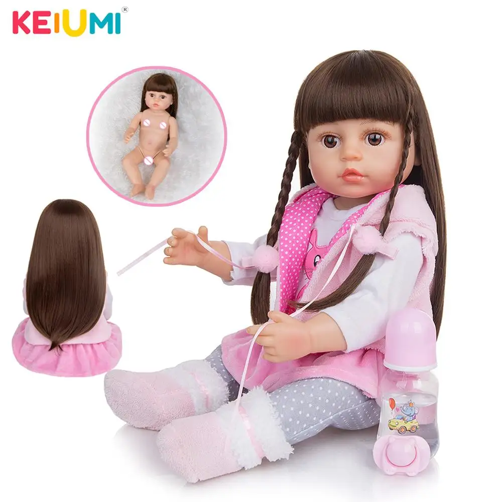 KEIUMI 55 см Прекрасный Reborn Boneca силиконовые всего тела винил Reborn для маленьких девочек куклы реалистичные подарки на день ребенка кровать времени друг детства