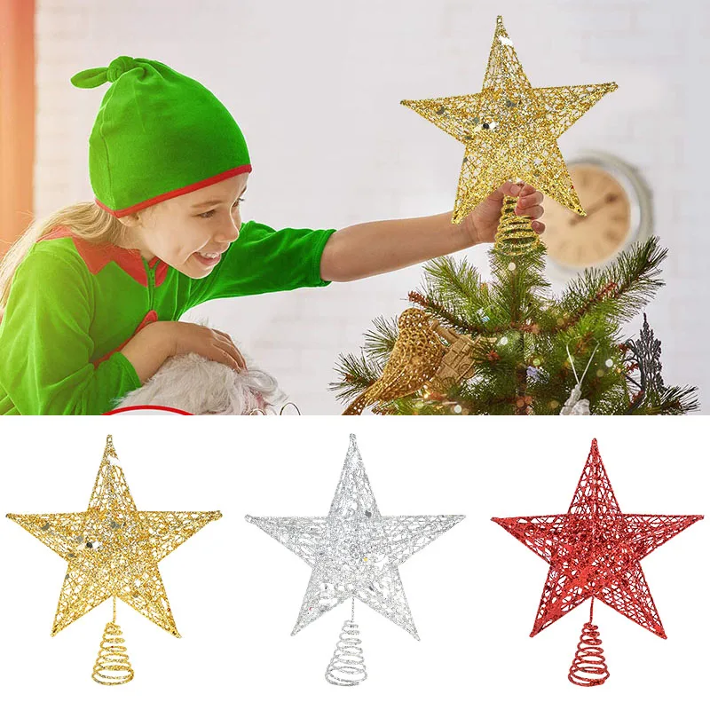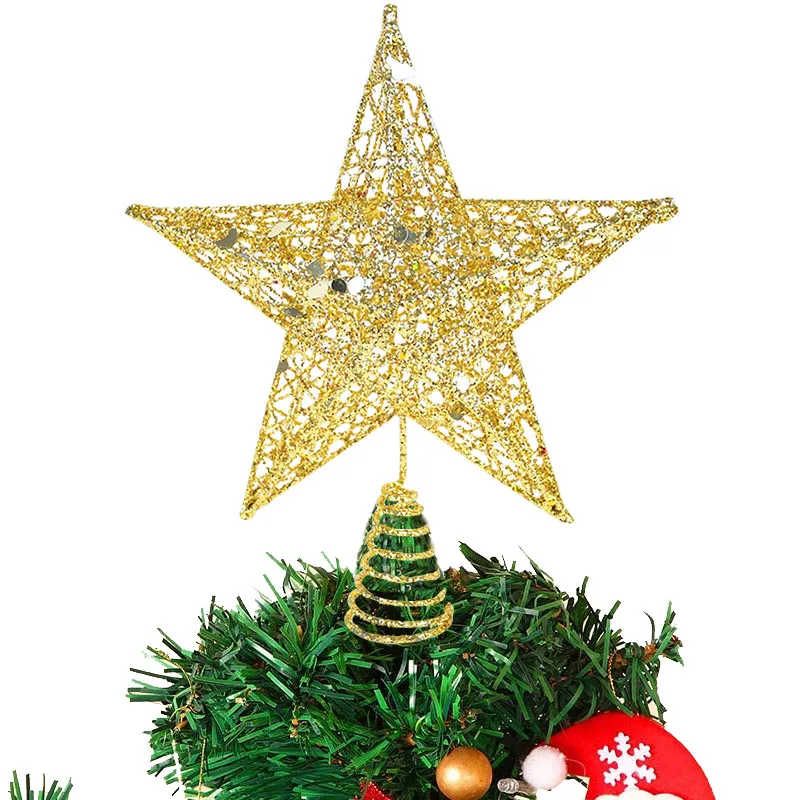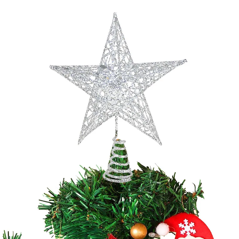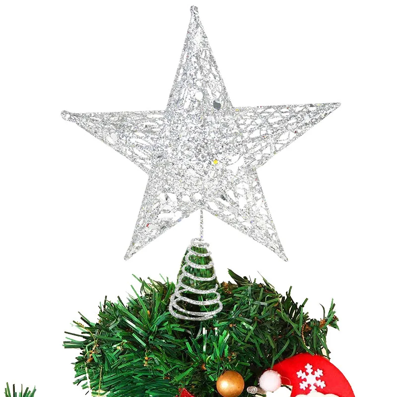 Золотистый Серебристый блестящий топ для рождественской елки звезда...