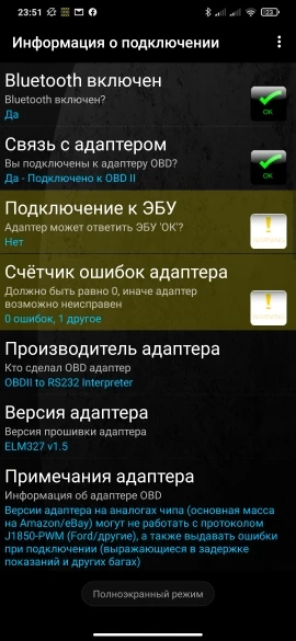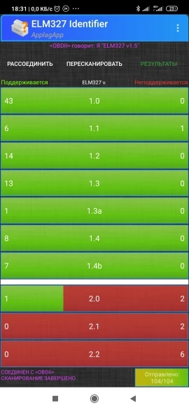 версия 2.1 вместо 1.5 нет соединения с эбу
