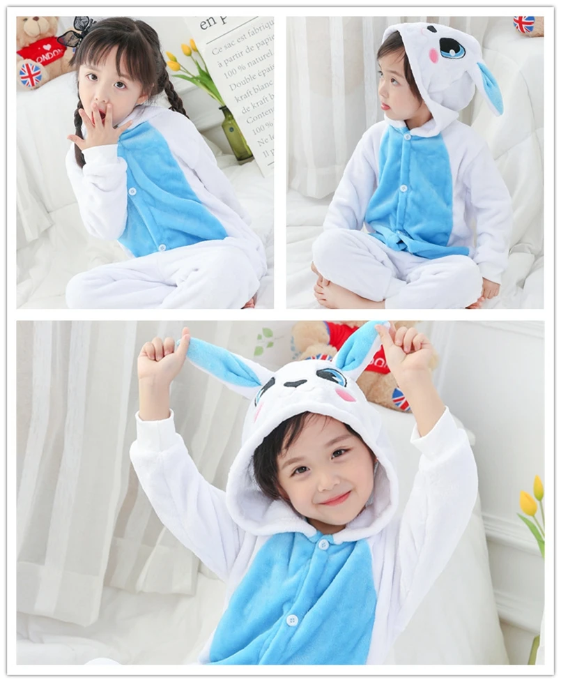 Пижама Кигуруми для мальчиков и девочек, розовый, синий, кролик, фл...
