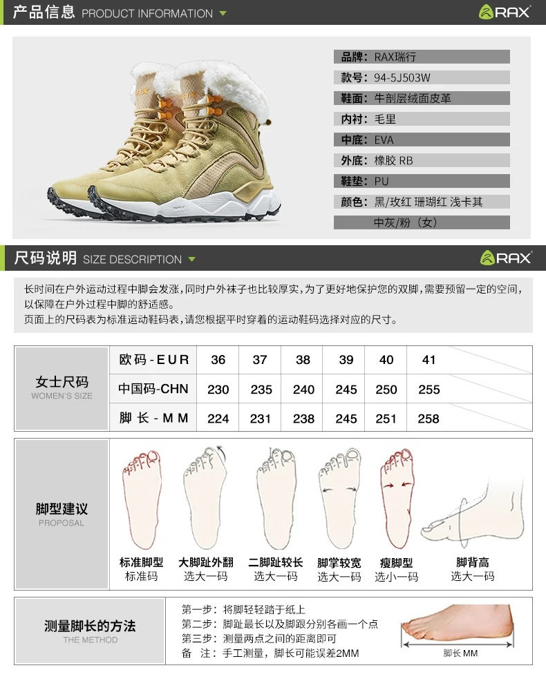 RAXкожаные ботинки; Очень теплые зимние ботинки на меху; Зимняя повседневная обувь для работы; Кроссовки с высоким берцем; Женские ботильоны на резиновой подошве