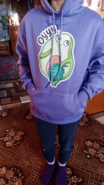 Считаю что на размер маломерит, брала S для дочери 10 лет, ей ну как сейчас модно оверсайз)) но по факту это где-то xs ткань плотная, с начесом, для зимы самое оно. Карман спереди, принт большой, на фото казался меньше, посмотрим выживет ли после стирки. А так сделано неплохо:нитки не торчат, запаха химозного нет, ребёнок в восторге. Доставили недели за 2 до Воронежа, трек полностью отслеживается.