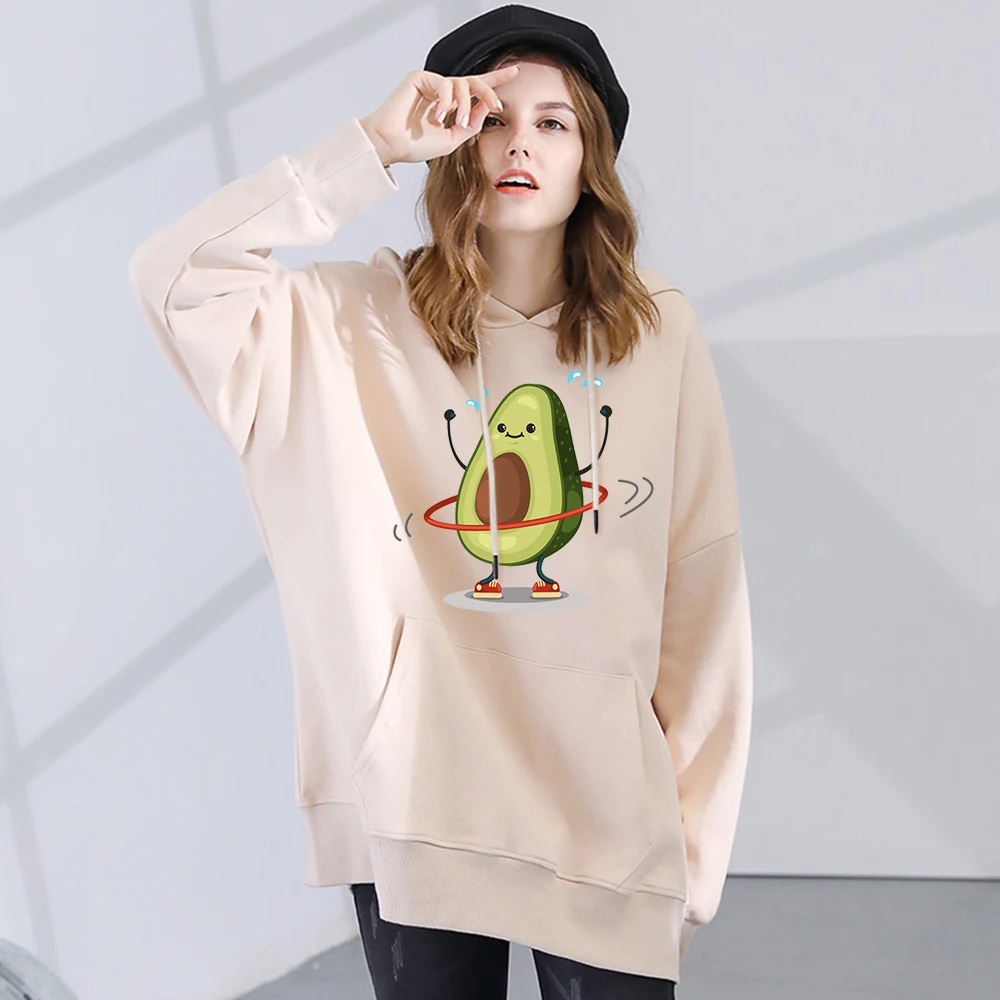 Толстовки со спортивным рисунком авокадо, теплая новая толстовка с капюшоном, женская одежда в стиле панк, Kpop, свободная флисовая толстовка с капюшоном для женщин