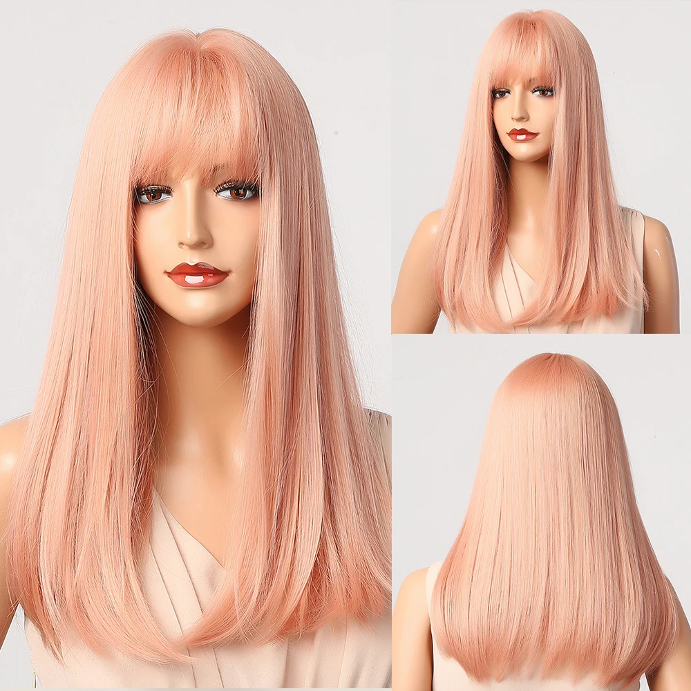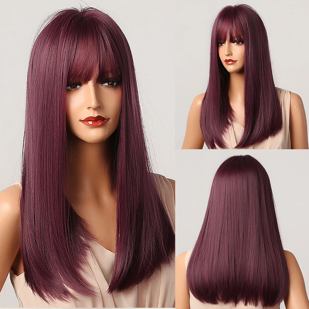 Длинные прямые синтетические парики с челкой, Парик Из Натурального...